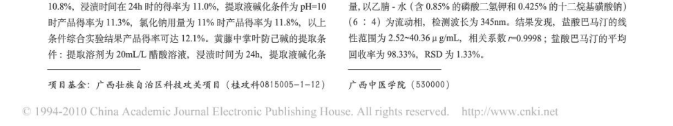 黃藤素的研究綜述